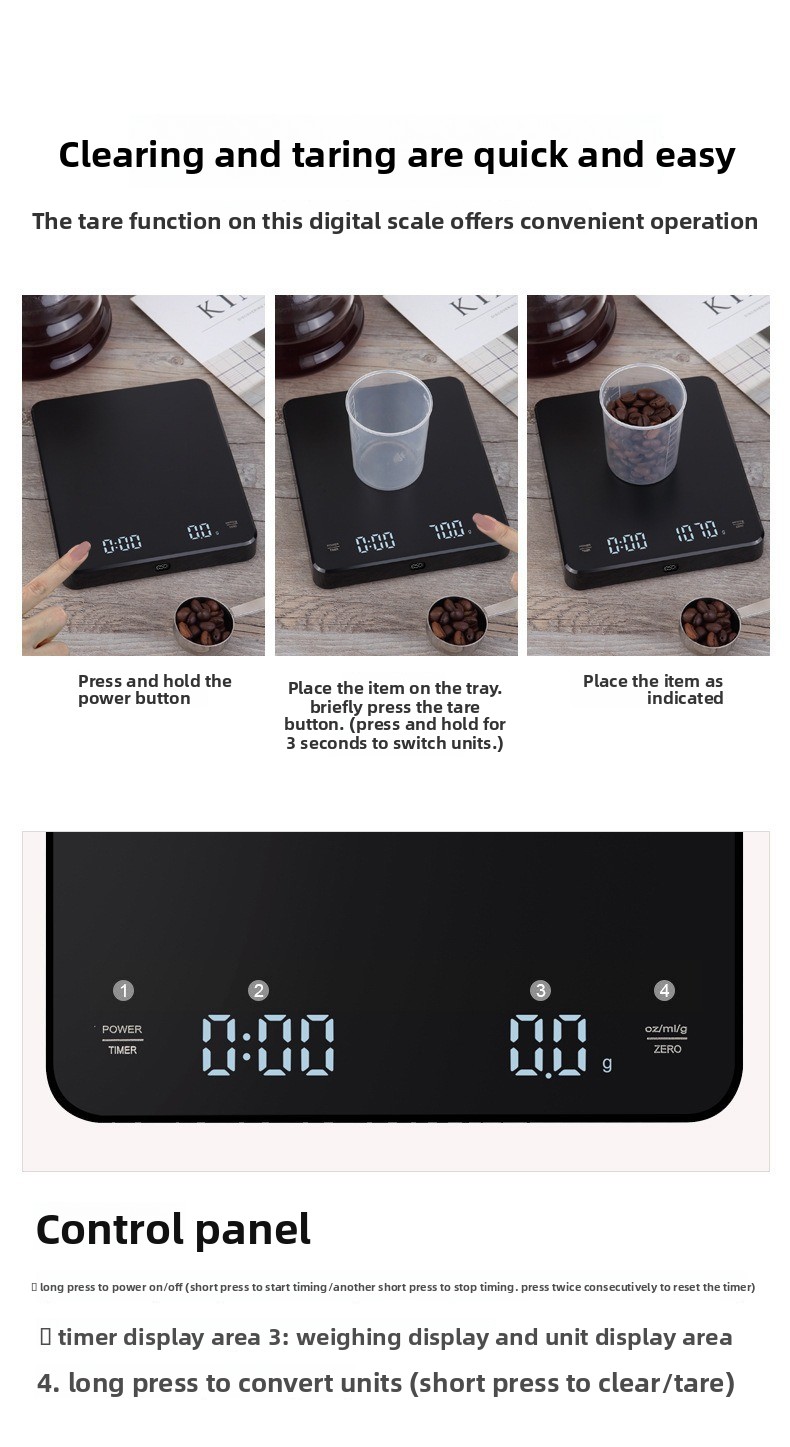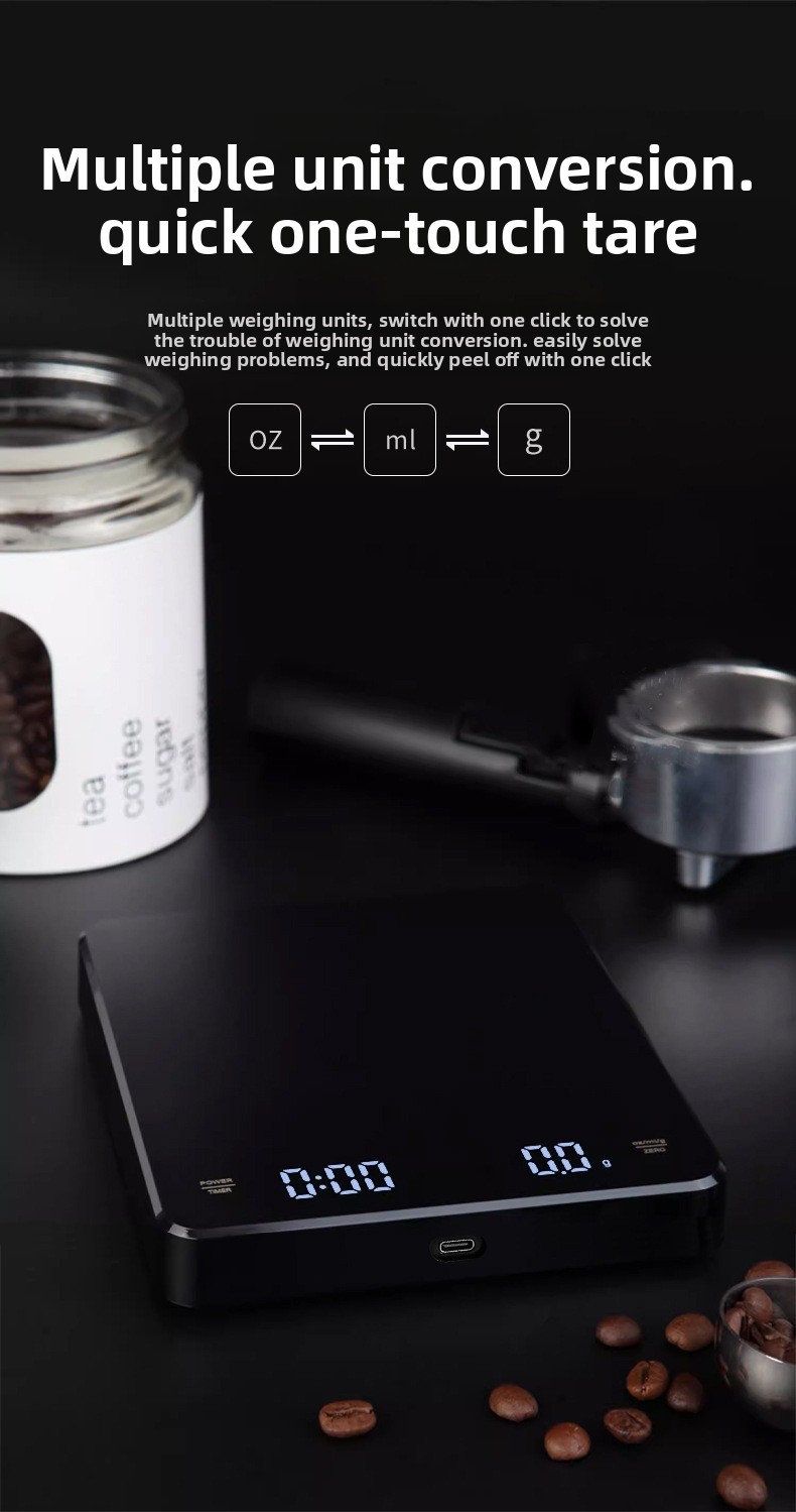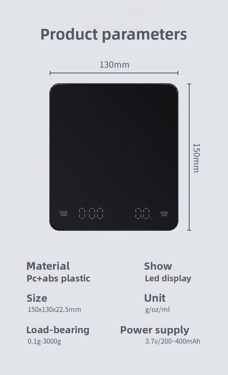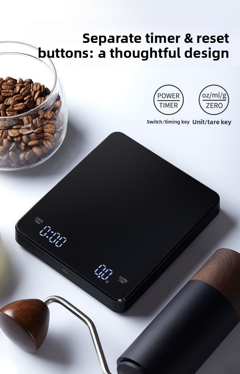 High-precision weighing: Accurate measurement up to 0.1g resolution for precise coffee brewing and food baking. Built-in timer: Integrated timing function to monitor brewing duration effortlessly