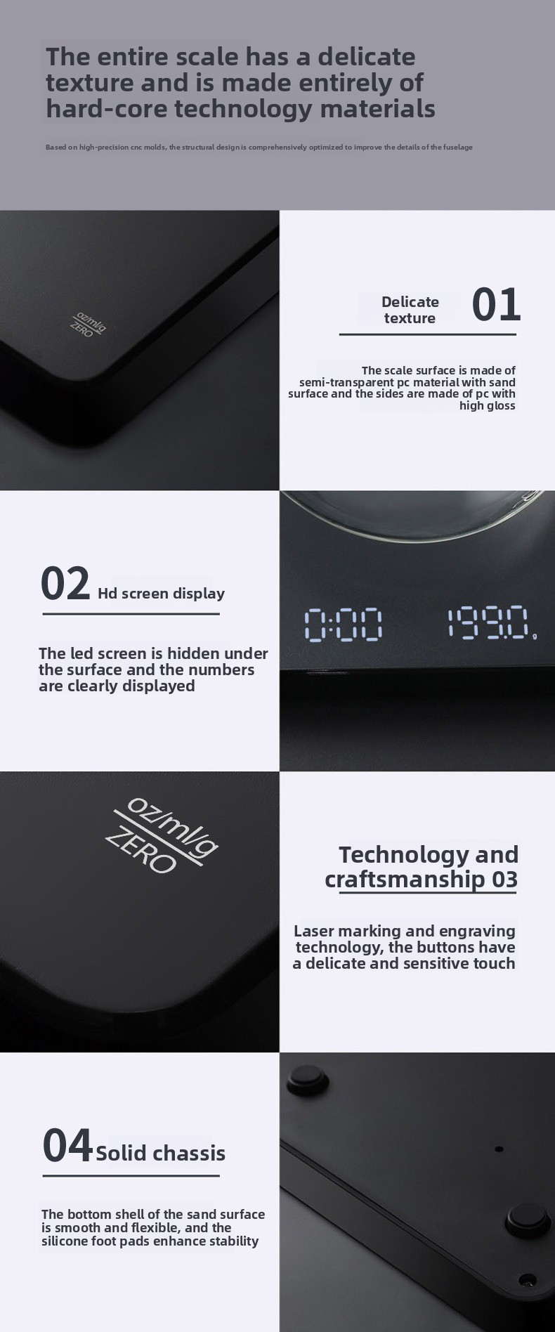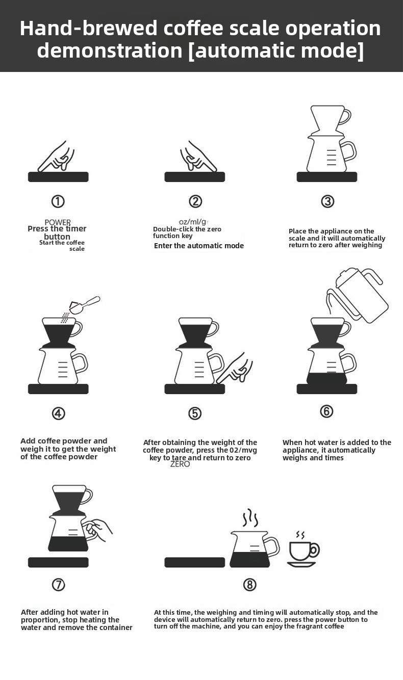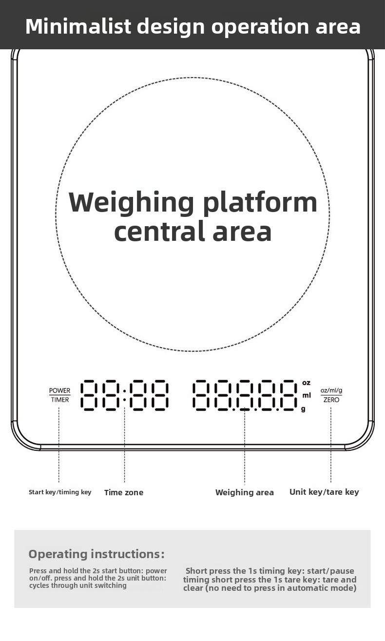 High-precision weighing: Accurate measurement up to 0.1g resolution for precise coffee brewing and food baking. Built-in timer: Integrated timing function to monitor brewing duration effortlessly